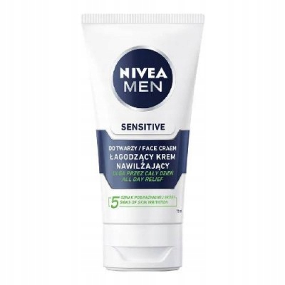 NIVEA Men Sensitive Krem łagodzący do twarzy dla mężczyzn przeznaczony jest do pielęgnacji skóry wrażliwej. Jego delikatna formuła z wyciągiem z lukrecji i rumianku zapewnia skuteczne nawilżanie skóry i ochronę przez cały dzień. Krem został stworzony specjalnie z myślą o potrzebach skóry wrażliwej i łatwo ulegającej podrażnieniom. Zaawansowana formuła nie zawiera substancji zapachowych, barwników oraz alkoholu, dzięki czemu zapobiega podrażnieniom skóry. Krem dodatkowo posiada system filtrów UVA i UVB, które chronią przed niekorzystnym wpływem czynników zewnętrznych i działaniem promieni słonecznych. Wypróbuj również pozostałe kosmetyki przeznaczone do pielęgnacji i golenia wrażliwej skóry twarzy z linii NIVEA Men Sensitive.