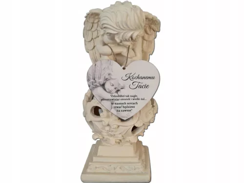 Aniołek w zestawie posiada drewniane serduszko z sentencją i dedykacją KOCHANEMU TACIE.