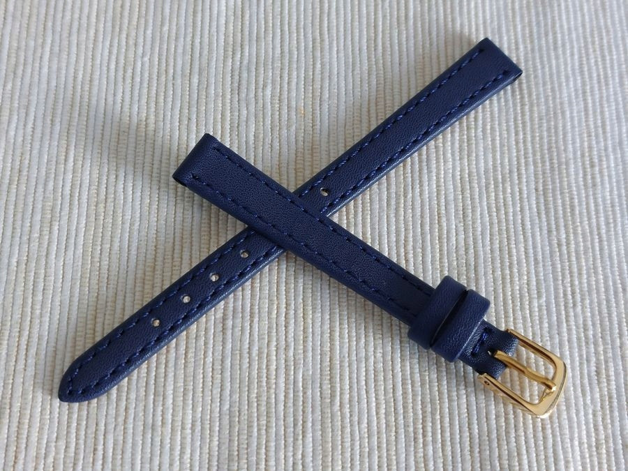 Pasek do zegarka damskiego został wykonany z wysokiej jakości gładkiej skóry naturalnej w kolorze granatowym.