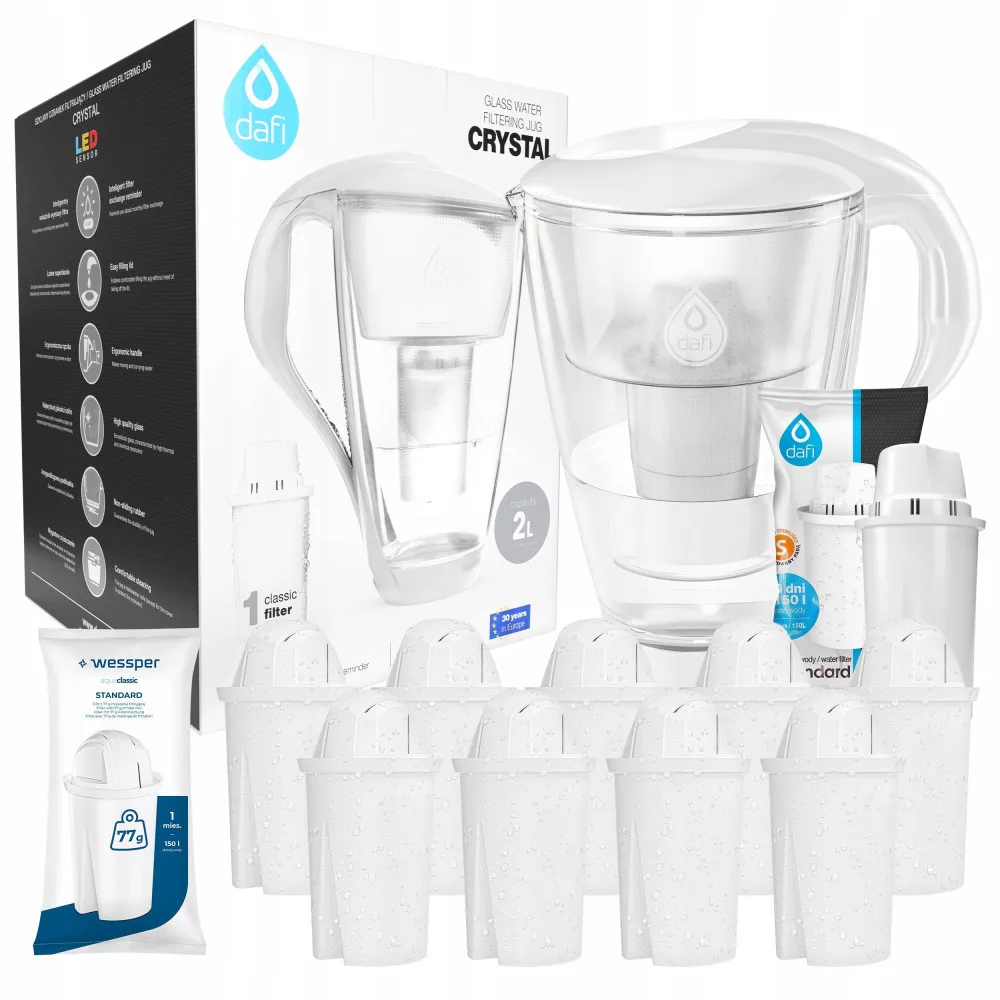 DZBANEK FILTRUJĄCY WODĘ DAFI CRYSTAL 2L + FILTR DAFI CLASSIC + 9x FILTR WESSPER AQUACLASSIC