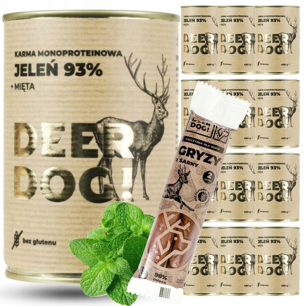 Mokra karma dla psa Deer Dog JELEŃ + MIĘTA puszka 400 G PREMIUM 93% MIĘSA