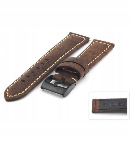 Sportowy skórzany pasek do zegarka firmy Diloy w kolorze Brązowym,