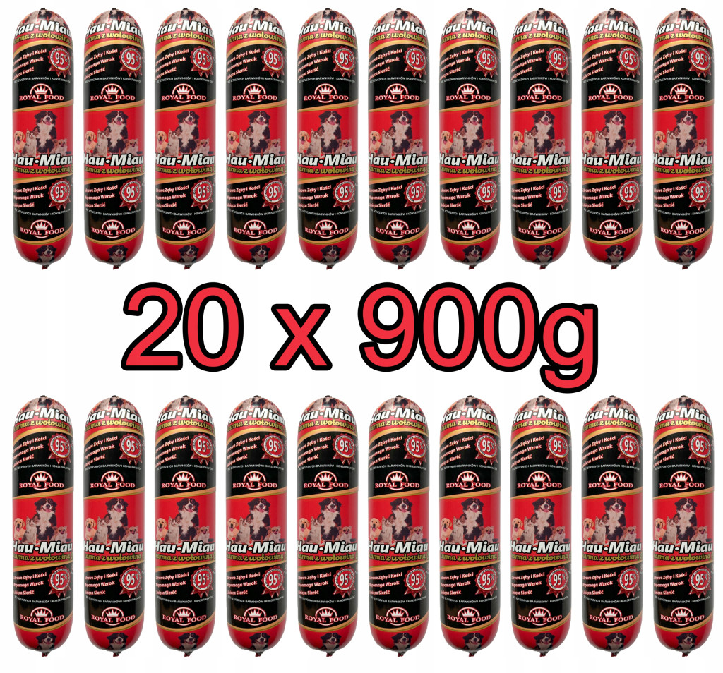 Mokra Karma dla Psa Wołowa Baton 95% Mięsa Wołowego 900g - Zestaw 20 Sztuk