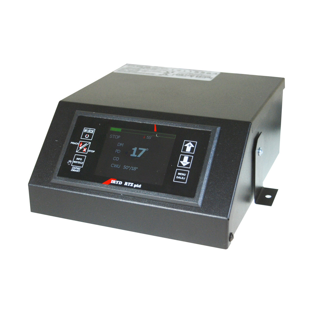 IRYD RTZ Pid Fuzzy Logic KOLOR jest regulatorem przeznaczonym do kontroli pracy kotła CO z podajnikiem ślimakowym lub tłokowym (z czujnikiem położenia podajnika). Regulator steruje rozbudowaną instalacją grzewczą. Specjalnie zaprojektowane menu umożliwia stopniowe uaktywnianie kolejnych funkcji oraz możliwości regulatora.