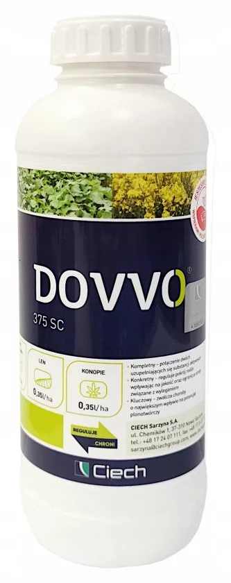 DOVVO 375 SC to produkt łączący w sobie funkcje fungicydu i regulatora wzrostu do stosowania w uprawie rzepaku ozimego oraz w uprawach małoobszarowych rzepak jary, rzepik, len, konopie, gorczyca i mak.