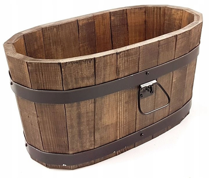 Doniczka posiada otwory drenażowe w grubym dnie z drewna sosnowego.