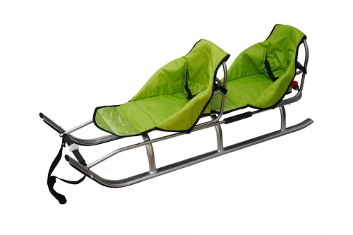 Duo-Twin-Tandemschlitten, groß für Kinder, mit Rückenlehne, stabilen, leichten PL-Gurtbändern