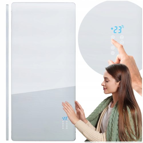 GRZEJNIK KONWEKTOROWY ŚCIENNY BIAŁY - SZKŁO HARTOWANE, WYŚWIETLACZ LCD