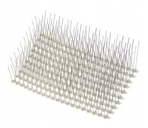 Podstawa wykonane z mocnego plastiku, kolce wykonane z nierdzewnego drutu. Pozwalają na ograniczenie przesiadywania ptaków zanieczyszczających parapety, balkony i tarasy.