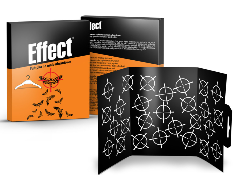 Pułapka na mole w ubraniach posiada żeński feromon płciowy owada. Feromon zwabia do pułapki samce owadów. Pułapki Effect wykorzystują również fakt, że jako pierwsze z poczwarek wychodzą samce.