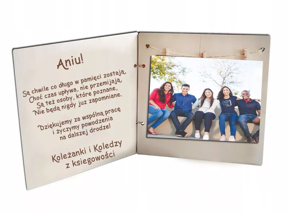 Zawiera życzenia oraz miejsce na zdjęcie lub pieniądze.