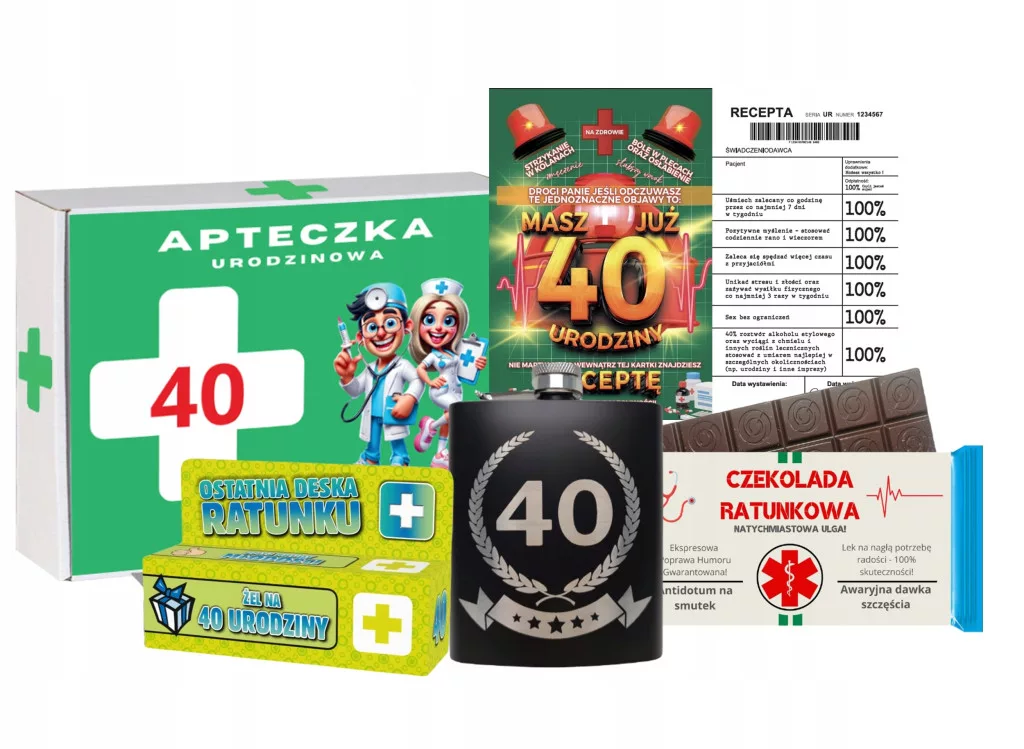 Śmieszna Zielona Apteczka na 40 Urodziny - Lek na Chwile Radości!