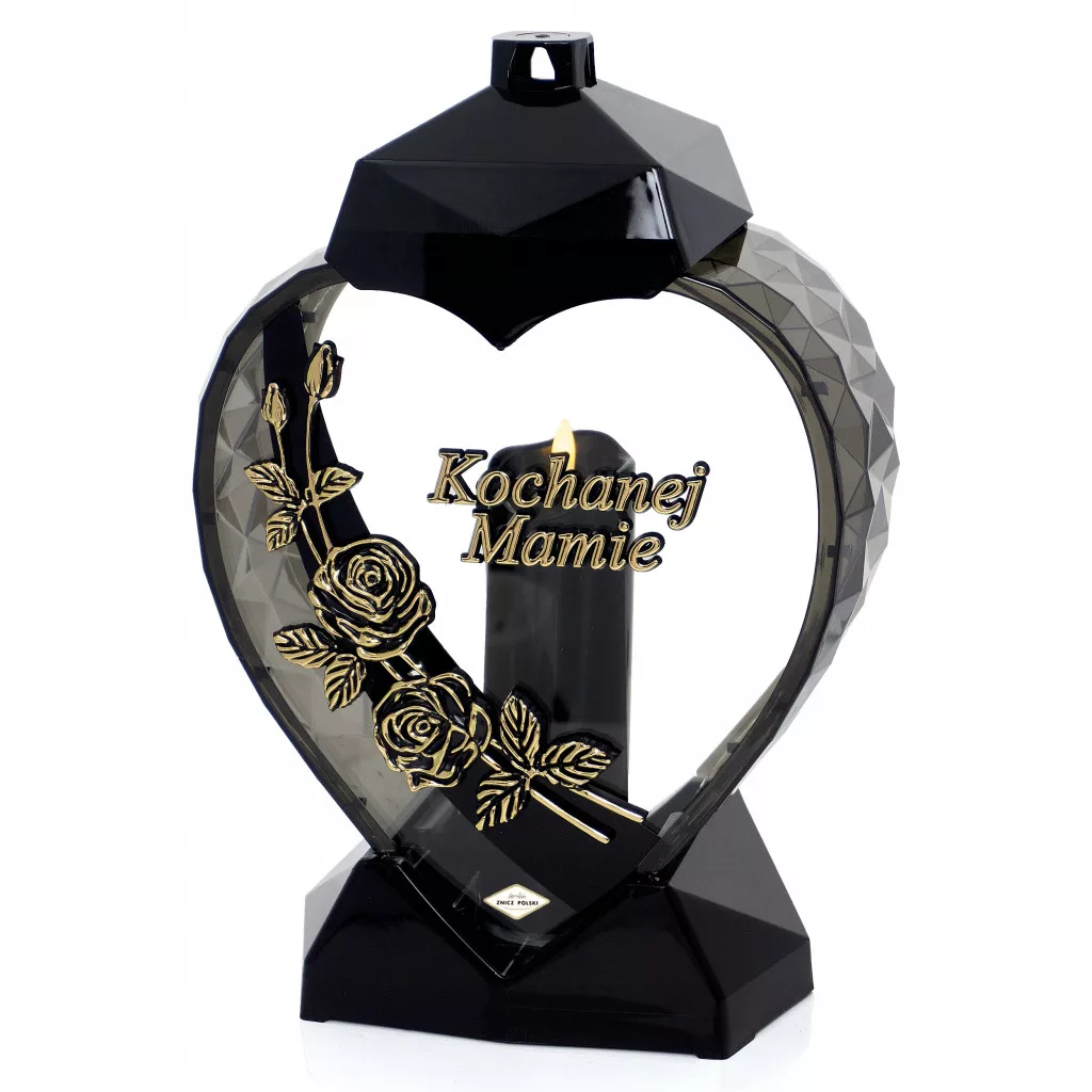 Elegancki znicz w kształcie serca z kwiatem róży dla Mamy złoty
