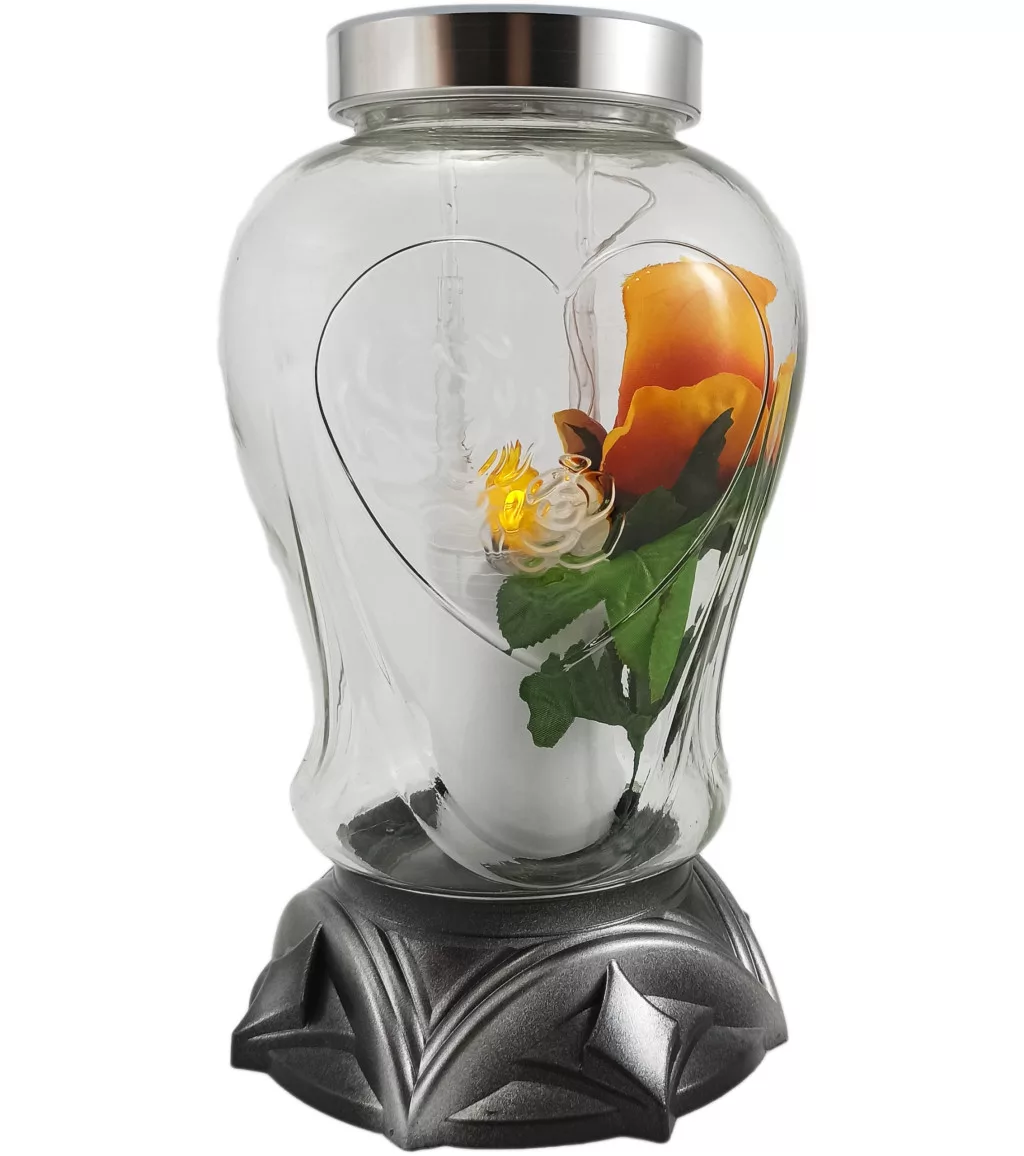 Duży znicz solarny z różą - NOWOŚĆ 2023