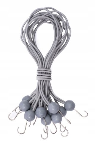 50X Gumka Napinająca z Kulką i Haczykiem (szara 300 mm) do namiotów, plandek, plakatów. Napinacz plandek, pętla ekspandera, uchwyt plandek, guma do plandek, gumowy napinacz, guma do namiotów, mocowanie siatek do bramki