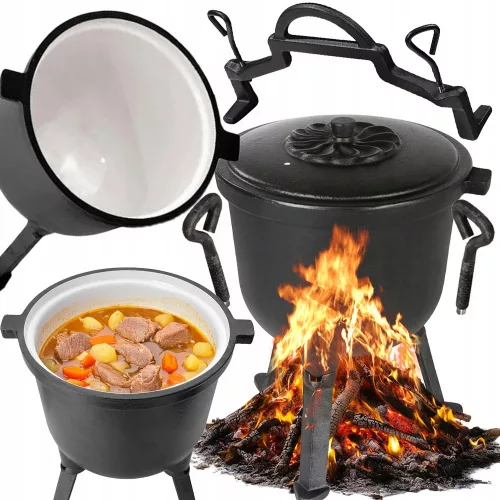 KOCIOŁEK ŻELIWNY EMALIOWANY GARNEK MYŚLIWSKI WĘGIERSKI 10L OGNISKO GRILL