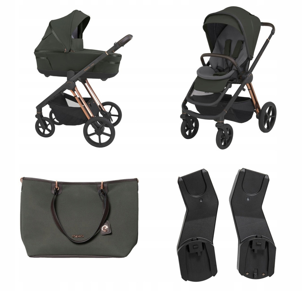 Przedmiotem sprzedaży są fabrycznie nowe wózki od Espiro model Miloo 2024 2w1 w kolorze 104 Luxury Green + adaptery Maxi Cosi, Cybex, Avionaut.