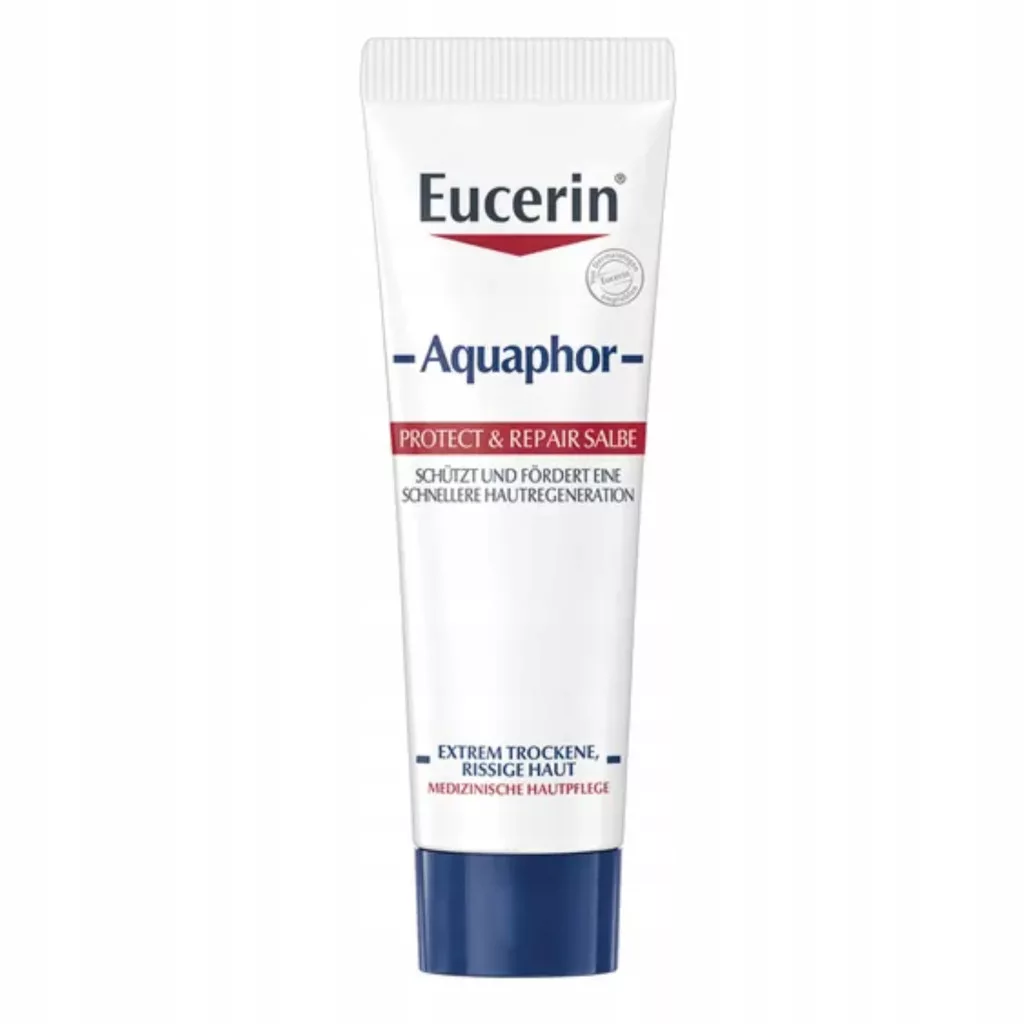 Eucerin Aquaphor Maść regenerująca zapewnia skórze suchej lub bardzo suchej, popękanej i podrażnionej niezbędną, intensywną pielęgnację. Ten bezwodny produkt tworzy na skórze delikatną, półokluzyjną barierę ochronną, która wspiera naturalny transfer pary wodnej oraz tlenu do skóry i ze skóry, umożliwiając jej „oddychanie” oraz wzmacniając jej naturalną barierę ochronną. Maść została wzbogacona o Glicerynę i Pantenol. Gliceryna to skuteczny składnik nawilżający, który przyciąga wodę i pomaga utrzymać ją w skórze. Działa razem z Pantenolem, który z kolei pomaga przyspieszyć regenerację skóry, a jednocześnie nawilża ją. Eucerin Aquaphor Maść regenerująca nie zawiera substancji zapachowych i konserwantów. Udowodniono klinicznie i dermatologicznie, że regeneruje bardzo suchą, popękaną i podrażnioną skórę.