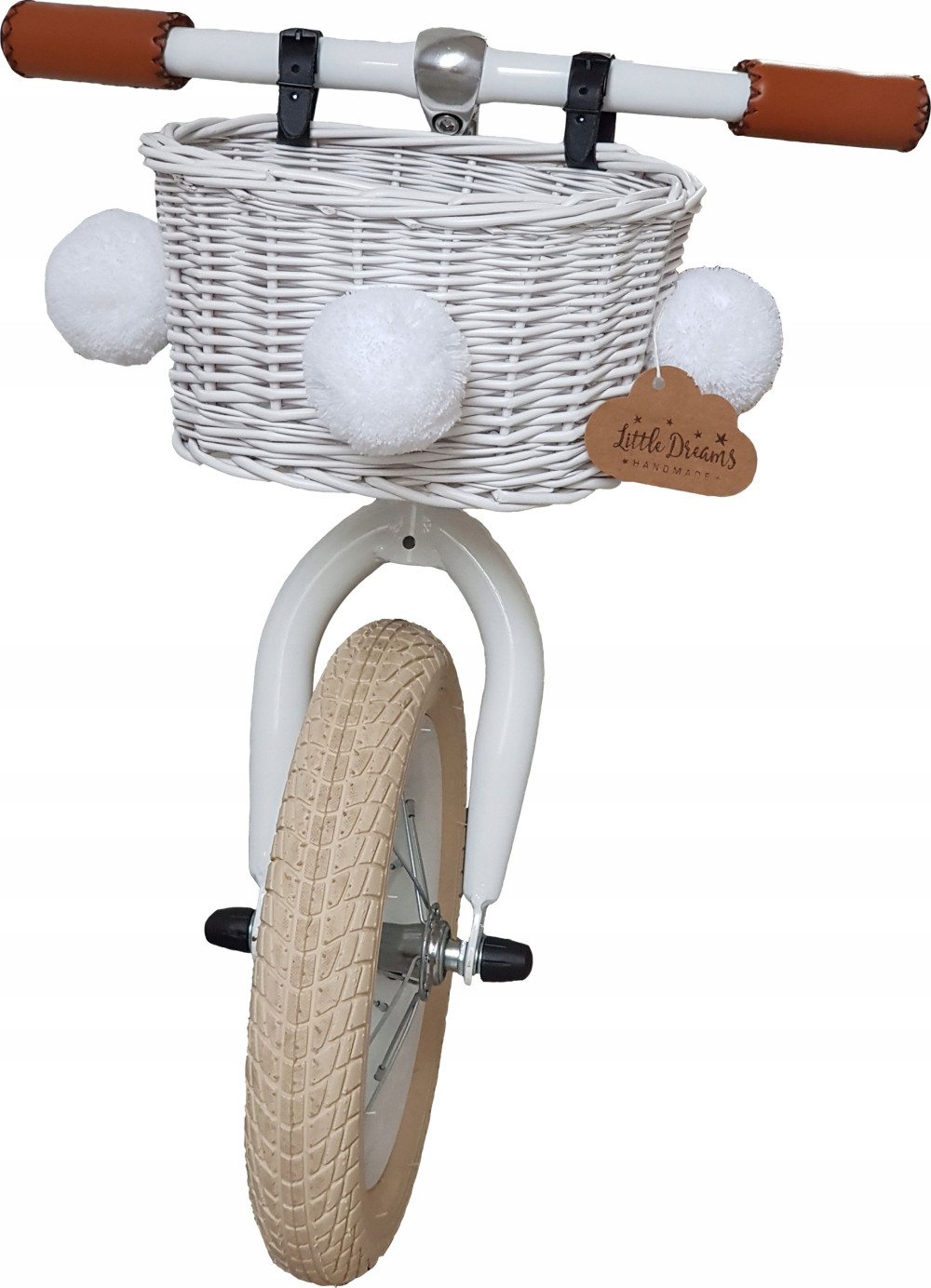 Do koszyka przymocowane są trzy pompony w bieli, które można odwiązać i przymocować w innym miejscu.