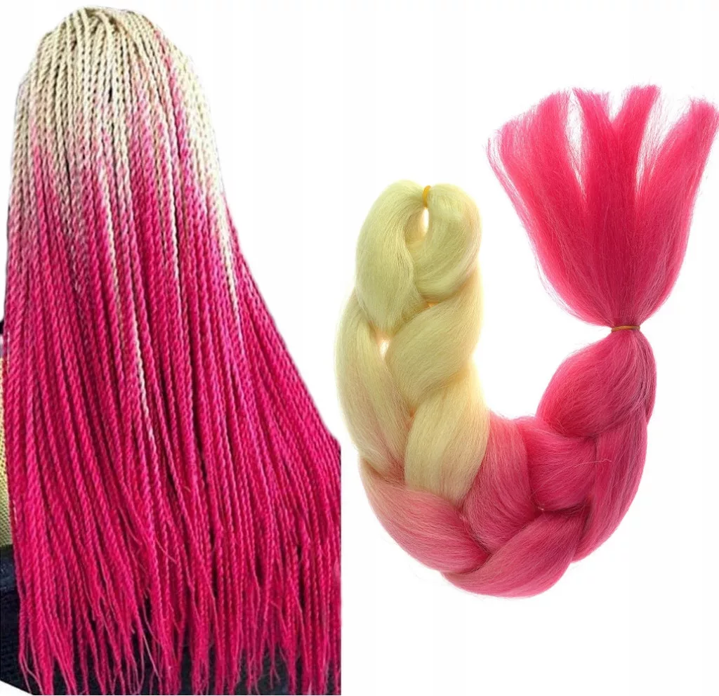 Włosy syntetyczne do kolorowych warkoczyków, kolorowe warkoczyki - B48 dwukolorowe, ombre pasmo 120 cm