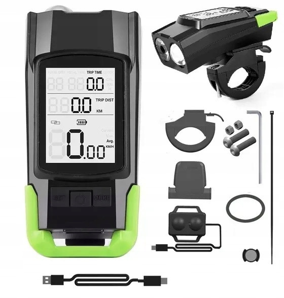 ✅Wodoodporny licznik + Lampka rowerowa LED 800 lumenów + Klakson 120 dB
