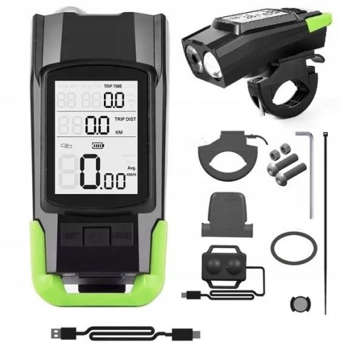 1 - BEZPRZEWODOWY LICZNIK, LAMPKA LED Z AKUMULATOREM 4000 mAh, KLAKSON