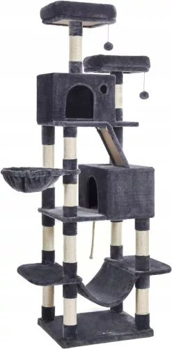 Produkt może być używany jednocześnie przez 4 koty, a słupki owinięte liną sizalową pozwolą zaspokoić chęć drapania chroniąc tym samym meble przed zarysowaniami.
