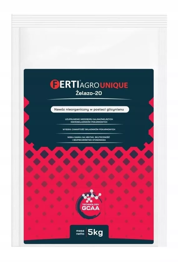 Ferti Agro Unique Fe to specjalistyczny nawóz mikroskładnikowy, zawierający żelazo w postaci glicynianu. Dzięki zaawansowanej formule nawóz zapewnia szybkie i efektywne uzupełnienie niedoborów żelaza w roślinach, wspierając ich zdrowy wzrost nawet w trudnych warunkach uprawy.