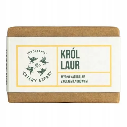 Naturalne mydła od Czterech Szpaków, bazujące na wysokiej jakości olejach roślinnych, tworzone są ręcznie tradycyjną metodą na zimno, a cały proces to czyste rzemiosło. Król Laur dzięki zawartości dobroczynnego oleju laurowego dogłębnie oczyszcza, a jednocześnie delikatnie pielęgnuje skórę wrażliwą, suchą i problematyczną. Dodatek olejku eterycznego z cyprysa nadaje kostce drzewno-balsamiczny zapach.
