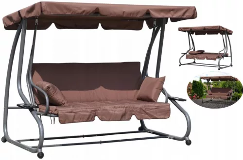 HUŚTAWKA OGRODOWA 3 OSOBOWA BUJANA ŁAWKA ROZKŁADANA PODUSZKI DASZEK BRĄZOWA