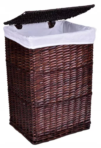Jest on bardzo ładnym uzupełnieniem, które dodaje charakteru dekorowanym pomieszczeniom. Produkt jest estetycznie wykonany z wikliny, a w środku wykończony lnianą wyściółką. Pokrywa posiada elastyczne paski, służące jako zawiasy.