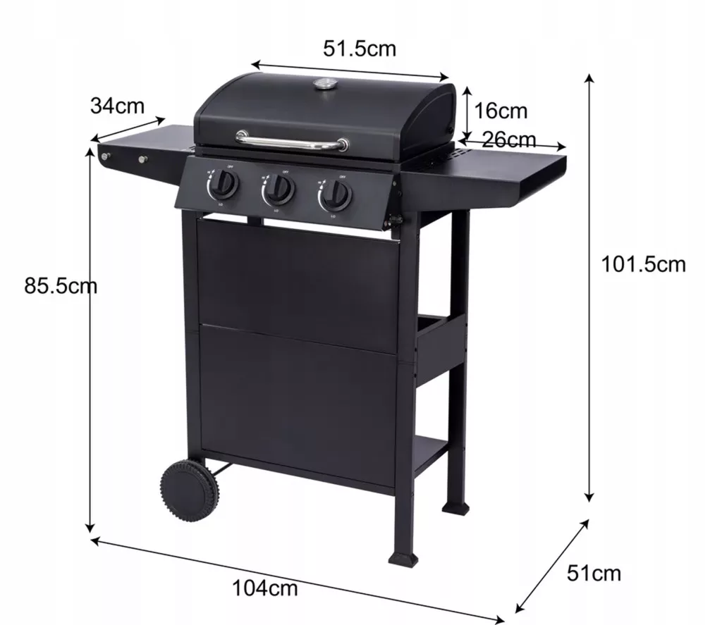 Ten grill gazowy został wyprodukowany zgodnie z wysokimi standardami jakości i jest zgodny ze wszystkimi obowiązującymi normami, aby zapewnić najwyższy możliwy poziom bezpieczeństwa podczas grillowania.Prosta, wysokiej jakości konstrukcja w połączeniu z wysoką funkcjonalnością urządzenia nie pozostawia nic do życzenia i zrobi wrażenie zarówno na właścicielach, jak i gościach, a różnorodne możliwości ustawień tego grilla pozwalają na optymalne ugotowanie każdej potrawyDzięki grillowi gazowemu możesz cieszyć się zdecydowaną przewagą nad grillami węglowymi: wygodą i użytecznością. Na przykład gotowanie jedzenia można rozpocząć w ciągu kilku minut, nie musisz się martwić dymem węglowym, proces gotowania można precyzyjnie kontrolować itp.Urządzenie posiada pojemne półki, dzięki którym wszystkie potrzebne przybory będziesz mieć zawsze pod ręką.Dzięki dwóm dużym kółkom grill można łatwo transportować i bezpiecznie przechowywać w miejscu użytkowania.