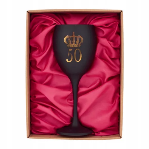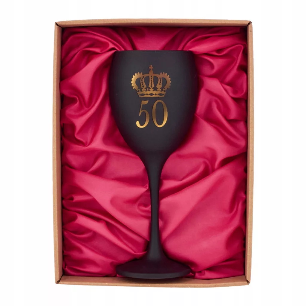Elegancki, matowy kieliszek do wina udekorowany pięknym grawerem z okazji 50 Urodzin. Doskonały prezent na wyjątkową okazję. Zapakowany w kartonowe pudełko, wypełnione satyną w kolorze różowym. Idealny sposób na celebrowanie tego wyjątkowego momentu w życiu.