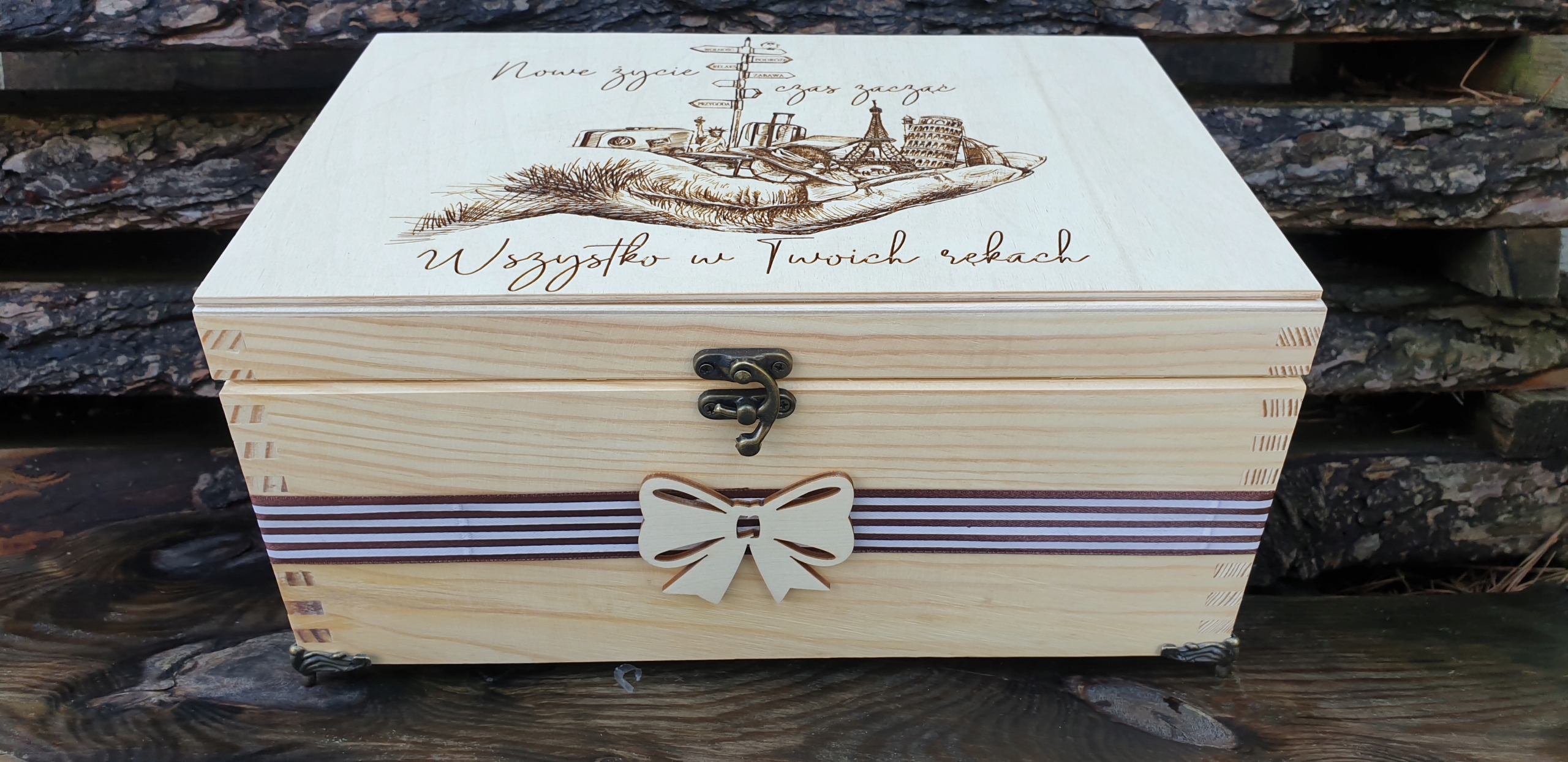 Elegancki pojemnik na drobiazgi, czy rodzinne pamiątki jak, chociażby zdjęcia.