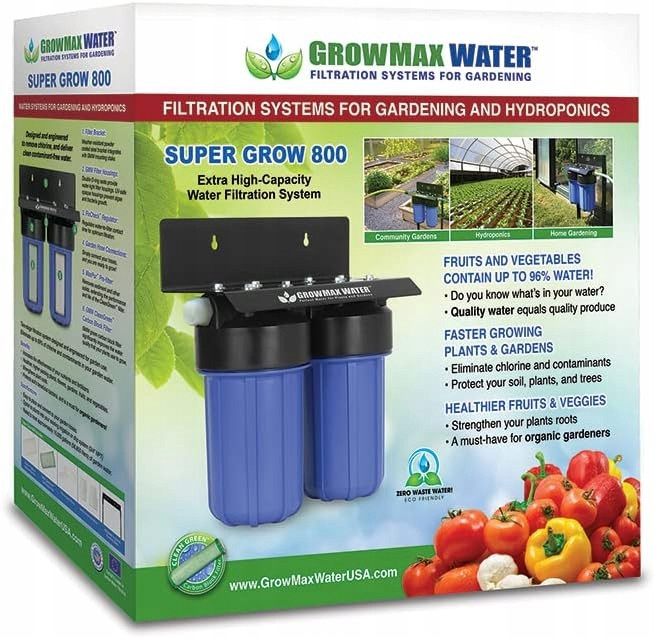 Super Grow 800. 2-stopniowy system filtracji wody o dużej wydajności. Idealny do stosowania w dużych ogrodach, szkółkach i uprawach. GrowMax Woda.