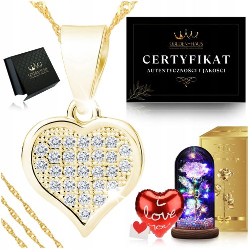 ✅ ZŁOTY NASZYJNIK SERDUSZKO + RÓŻA WIECZNA, DLA KOBIETY DZIEWCZYNY MAMY ŻONY