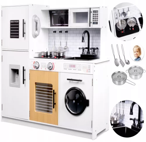 ☀️ Rozwój motoryki: Kuchnia wyposażona w liczne detale, takie jak pokrętła, ruchome drzwiczki i haczyki, doskonale angażuje małe rączki. Ich obsługa pozwala rozwijać chwytność oraz małą motorykę, wspierając zdolności manualne dziecka.