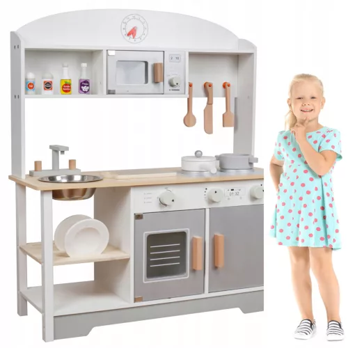 Duża drewniana kuchnia to spełnienie marzeń niejednego malucha. Wykonana z ogromną starannością zachwyca detalami i praktycznością!