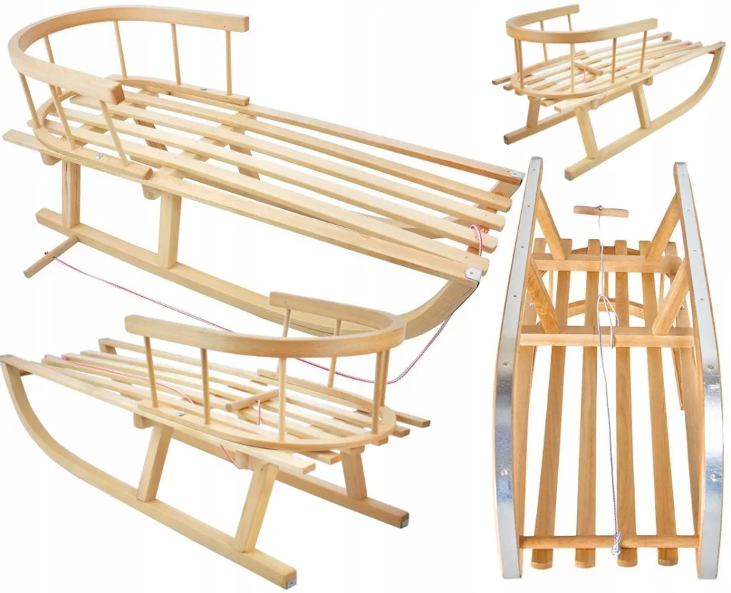 GROSSER SCHLITTEN AUS MASSIVEM HOLZ MIT RÜCKENLEHNE + SEITE