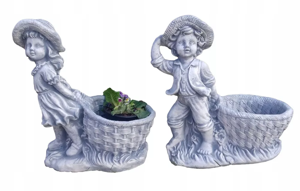 Gartenfiguren, Betonfiguren, Blumentöpfe, Kinder