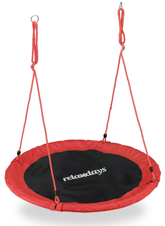 Relaxdays Unisex – huśtawka ogrodowa dla dorosłych, czerwona, okrągła, dla dzieci i dorosłych, regulowana, Ø 90 cm, do 100 kg, wys. x śr.: ok. 5 x 90 cm