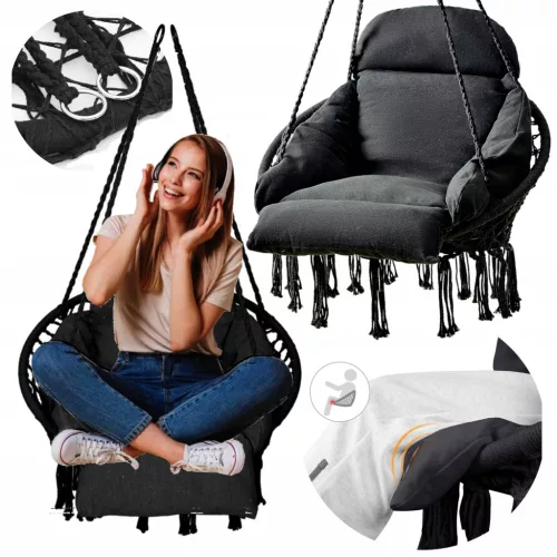 Zrelaksuj się w stylowym fotelu wiszącym typu boho z miękką wygodną poduszką w rozmiarze XXL!
