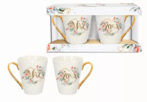 • Komplet dwóch porcelanowych kubków dla nowożeńców z nadrukiem