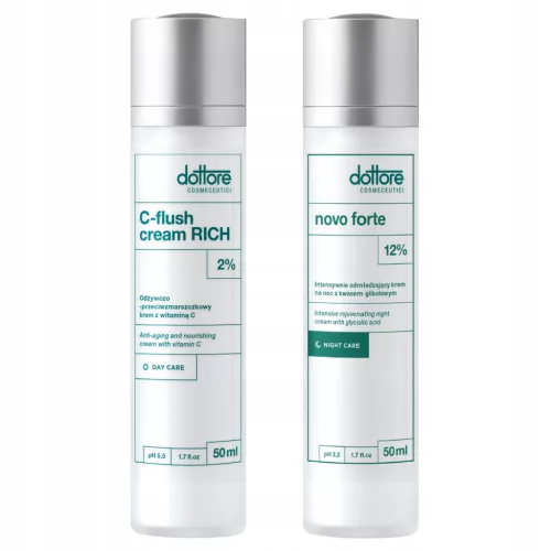 Po dokładnym oczyszczeniu skóry twarzy, szyi i dekoltu wmasuj niewielką ilość C-flush cream RICH, pomijając okolicę oczu. Wklepuj opuszkami palców, aż do całkowitego wchłonięcia. Na noc użyj Novo Forte. Na okolicę oczu zastosuj krem przeznaczony do pielęgnacji tego obszaru.