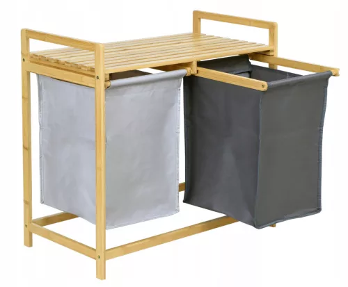 DOPPELTER SCHIEBEWÄSCHEKORB AUS BAMBUS FÜR UNTERWÄSCHE MIT REGAL 80L