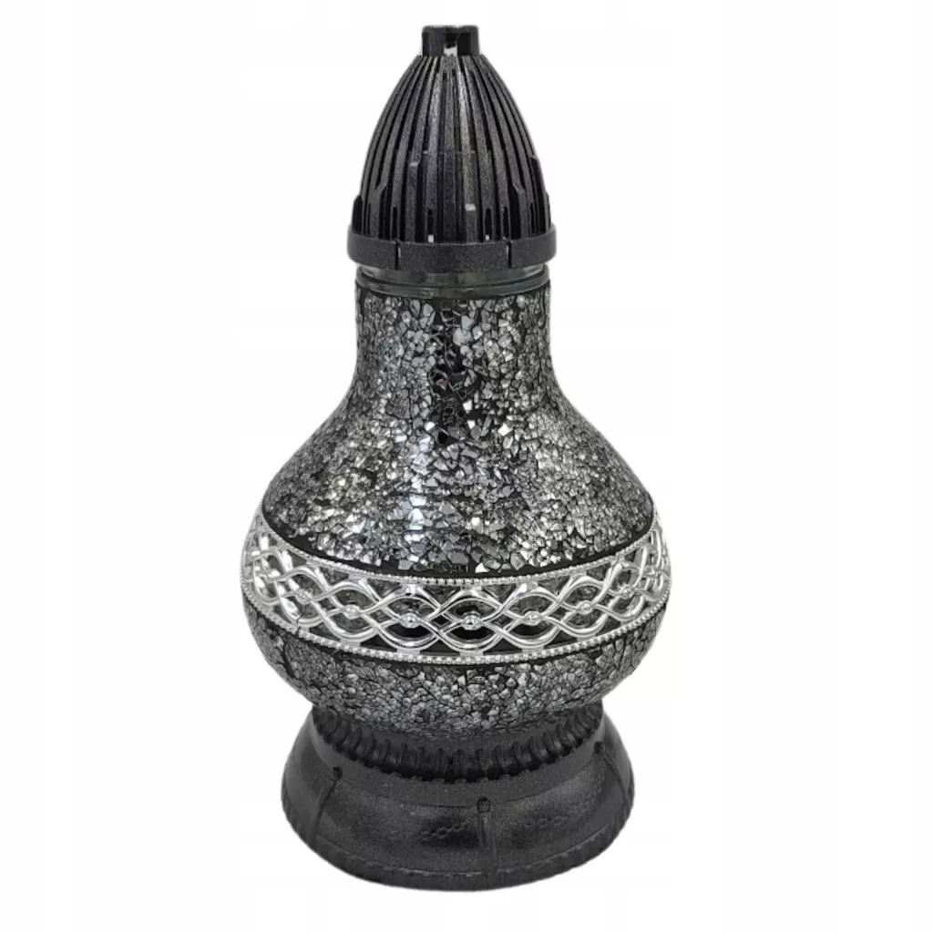 Znicz na Grób Duży Lampion Premium Karafa Witraż Mini Dekor Srebrna 34 cm