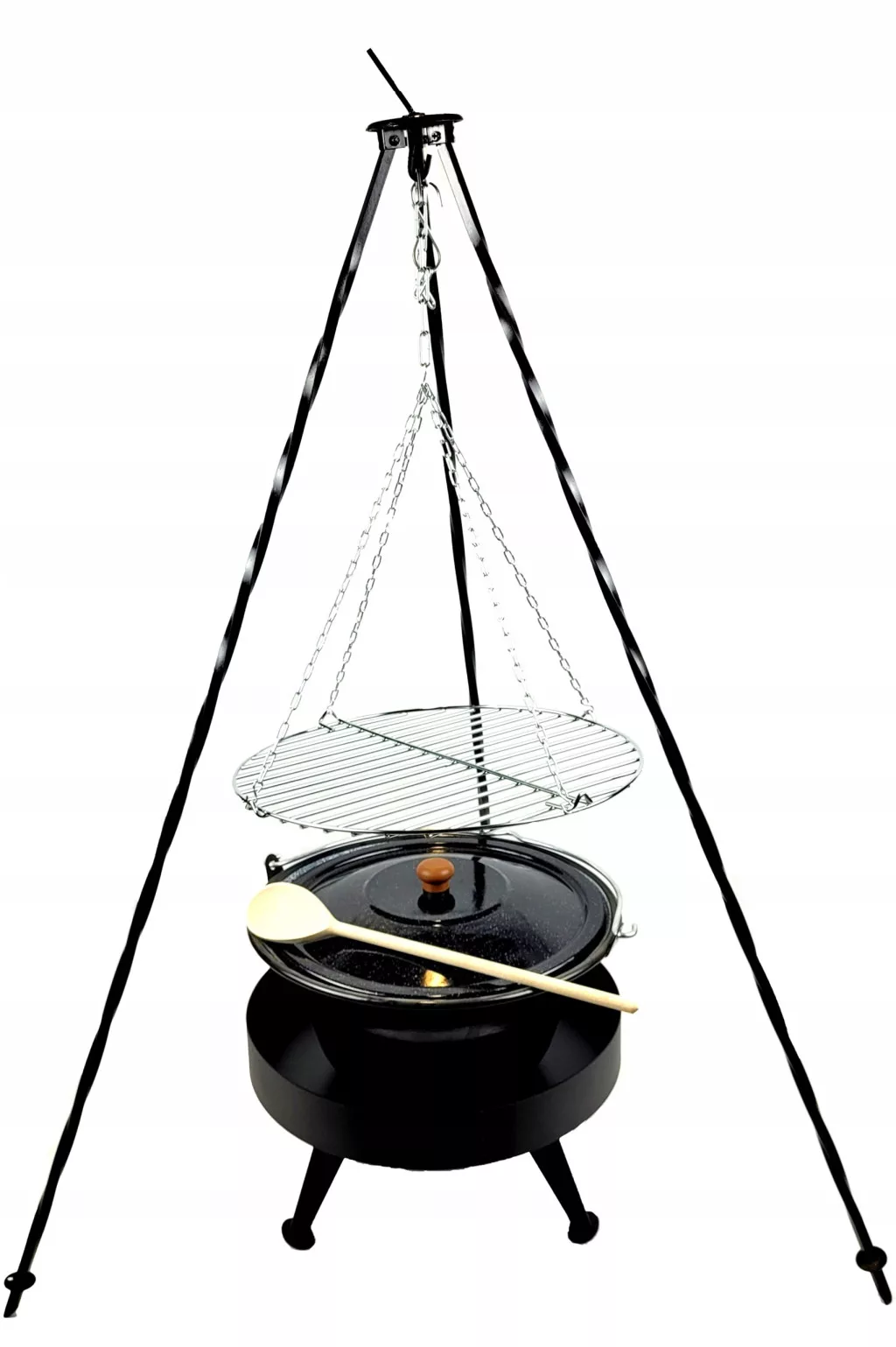 Grill 120 cm, Feuerraum 40, Rost 40 cm, Kessel 10 l, Dreibein 120 cm