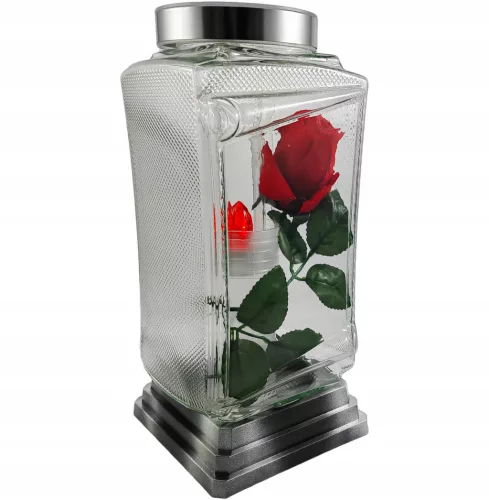Duży znicz solarny z różą - NOWOŚĆ 2024