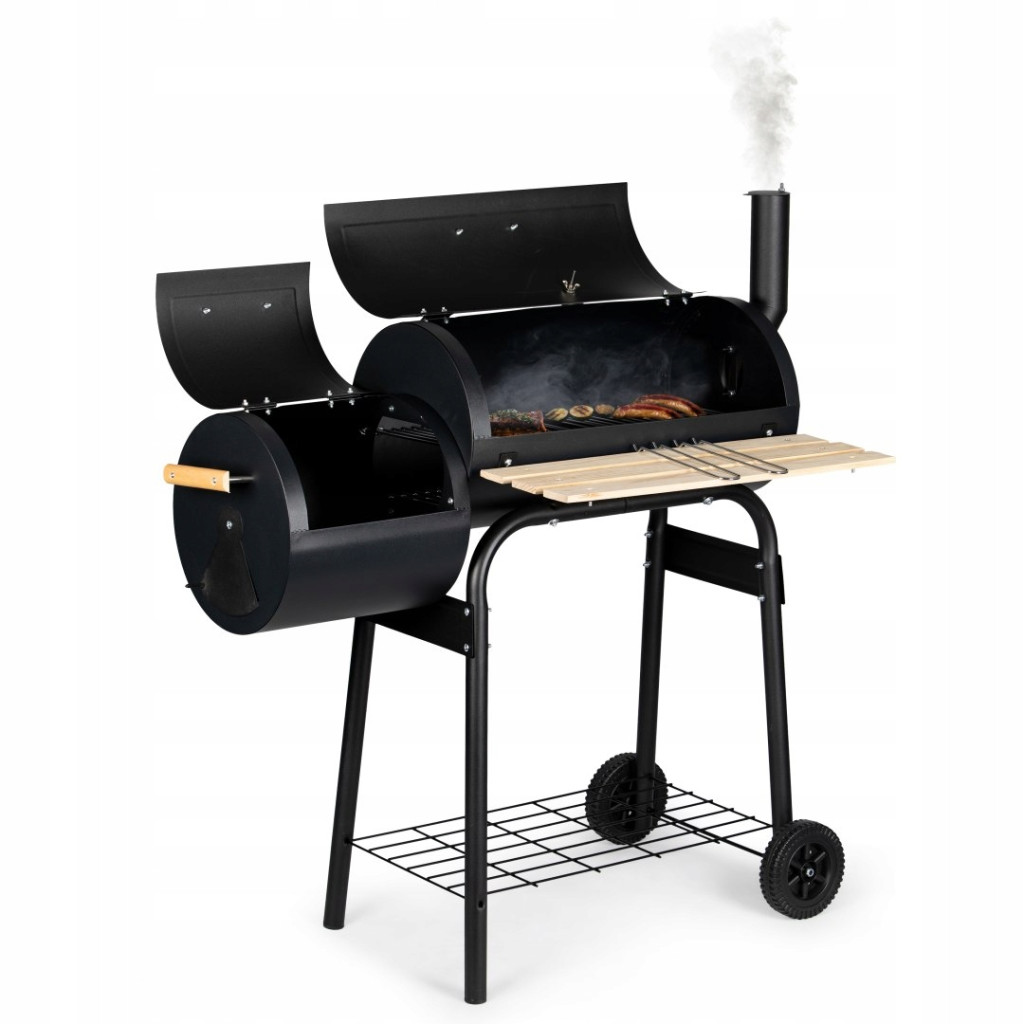 Duży grill ogrodowy wędzarbua 2w1 z termometrem komin półka koła