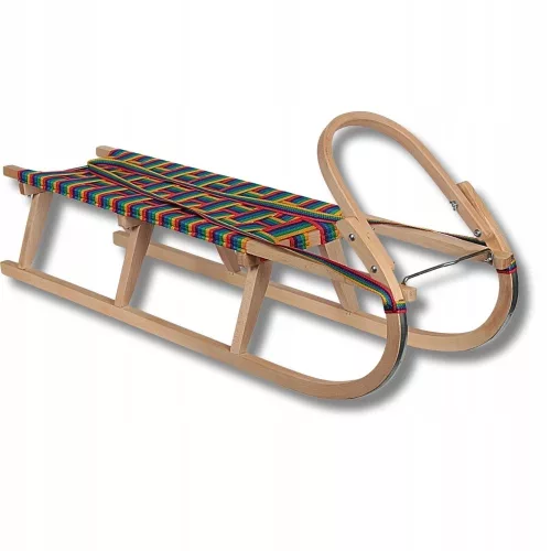 Wyróżniającą cechą tych sanek są przednie płozy zakręcone w kształcie "baranich rogów", co nie tylko dodaje im uroku, ale także poprawia sterowność i stabilność podczas jazdy. Solidna, bukowa konstrukcja zapewnia wytrzymałość i odporność na trudne warunki atmosferyczne. Starannie wykonane listewki, mocowane na wkrętach, gwarantują niezawodność i długotrwałe użytkowanie.